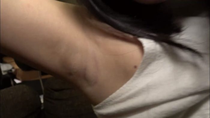 綺麗なバンザイ正常位ではありませんがワキにある線をしっかり見ることができて中出しSEXで見せるくっきりとしたワキのシワがエロさを引き立てます。